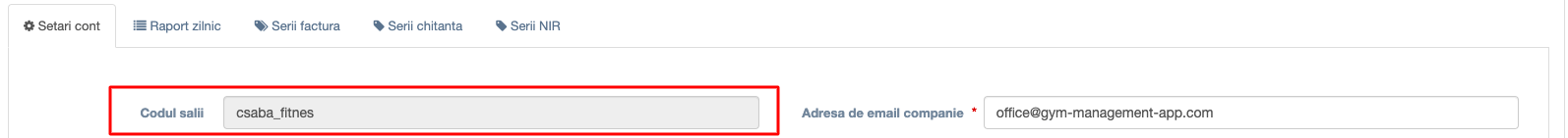 Pasul 2 - Introduceți codul sălii - (Codul sălii apare în secțiunea Setări Cont)
