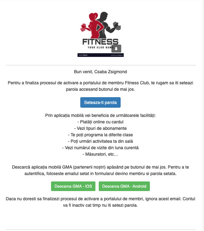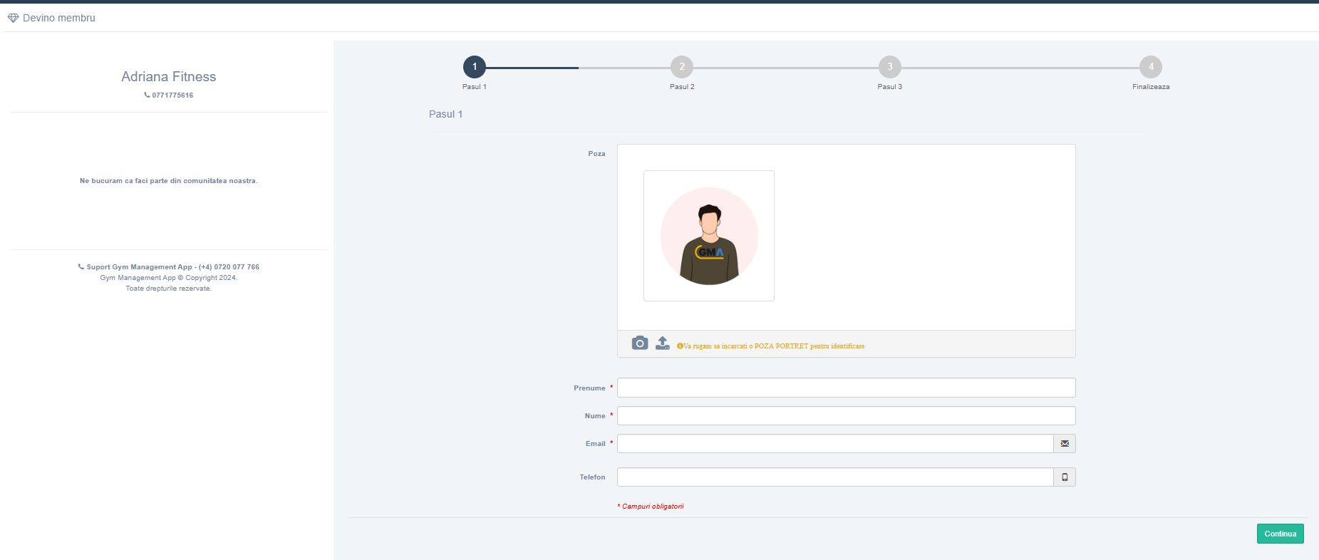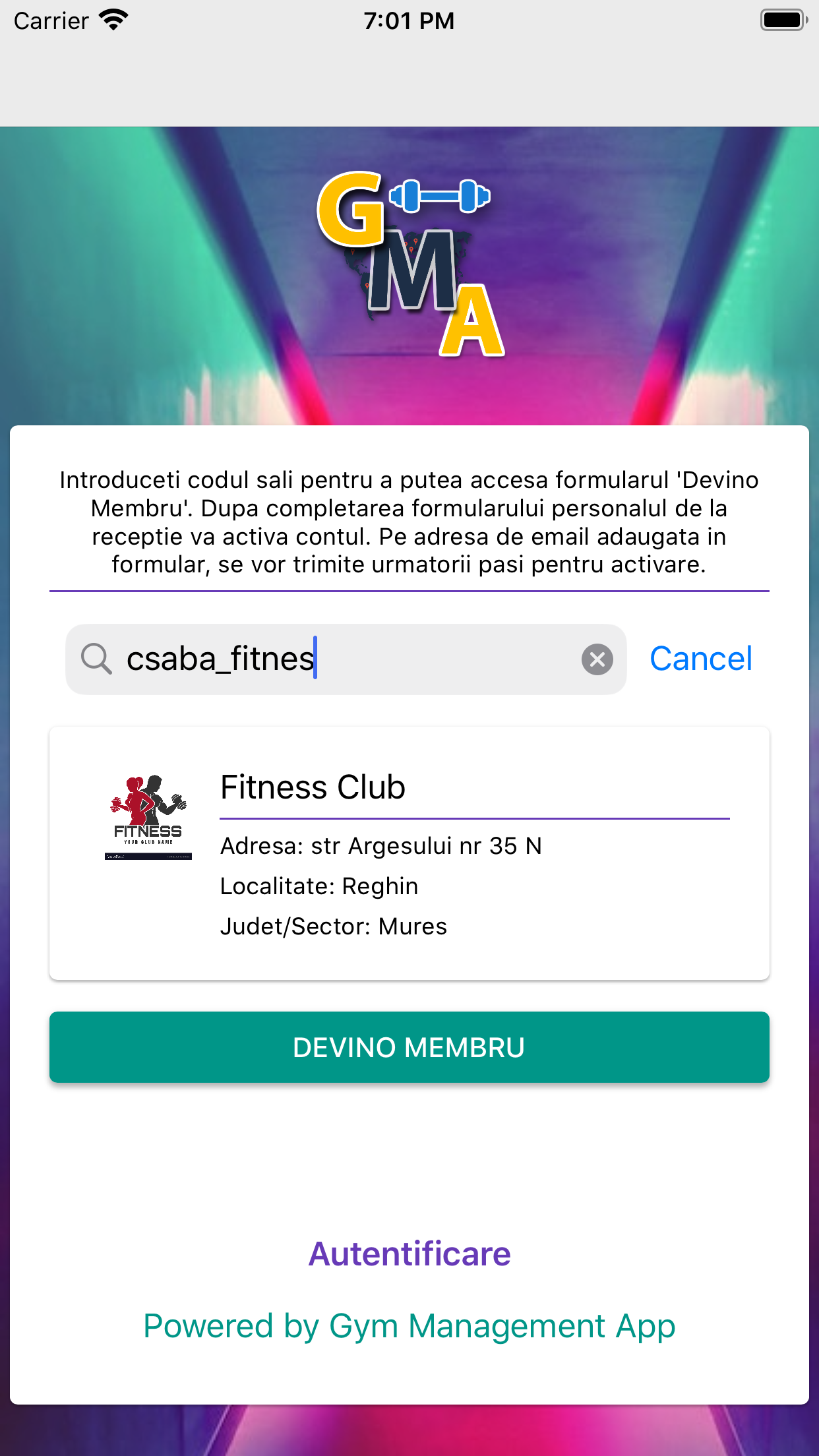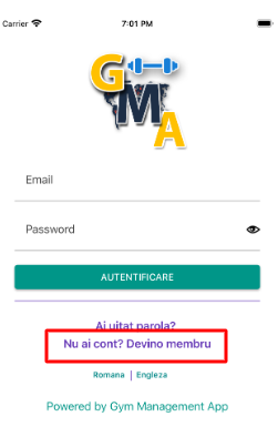 - Prin intermediul aplicației mobile GMA, pe pagina de login -> Nu ai cont, Devino Membru