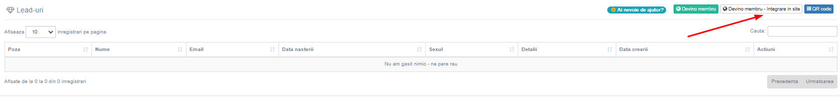 Link-ul formularului Devino membru - integrat in site se găsește în secțiunea Leaduri