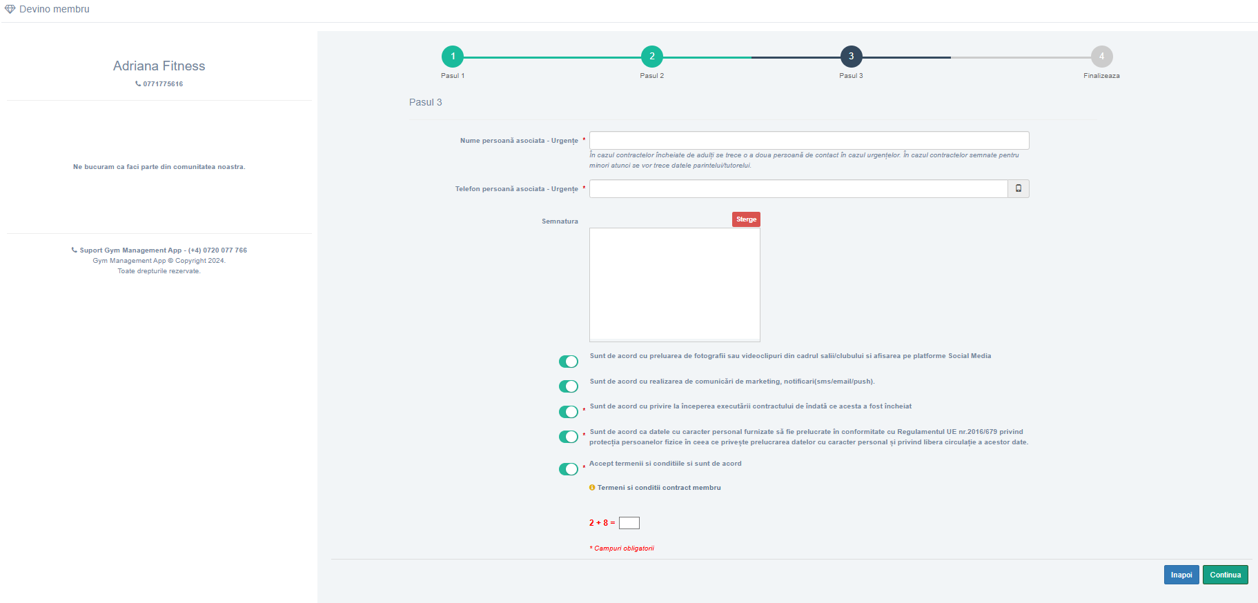 Pasul 3 - Se completează datele de către membru - Inclusiv semnătura membru