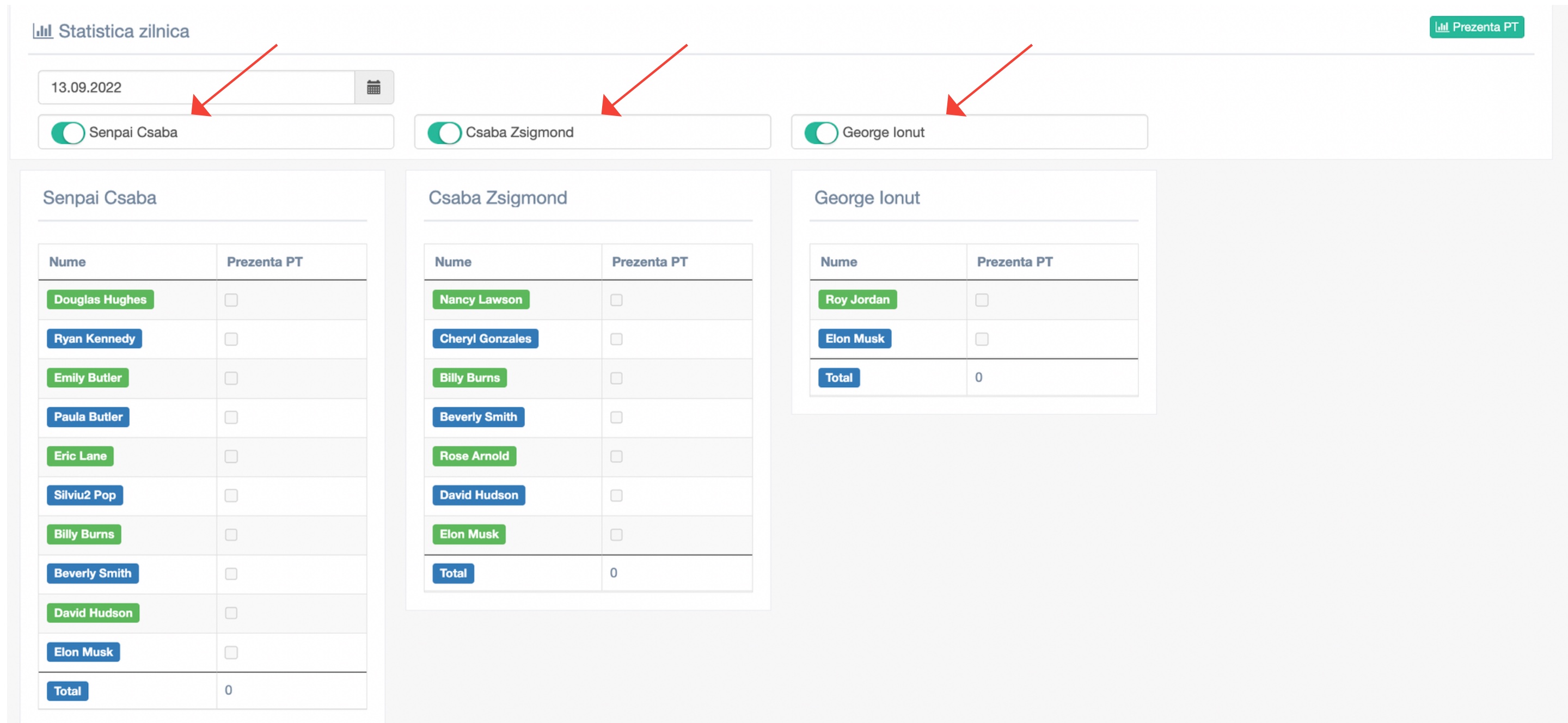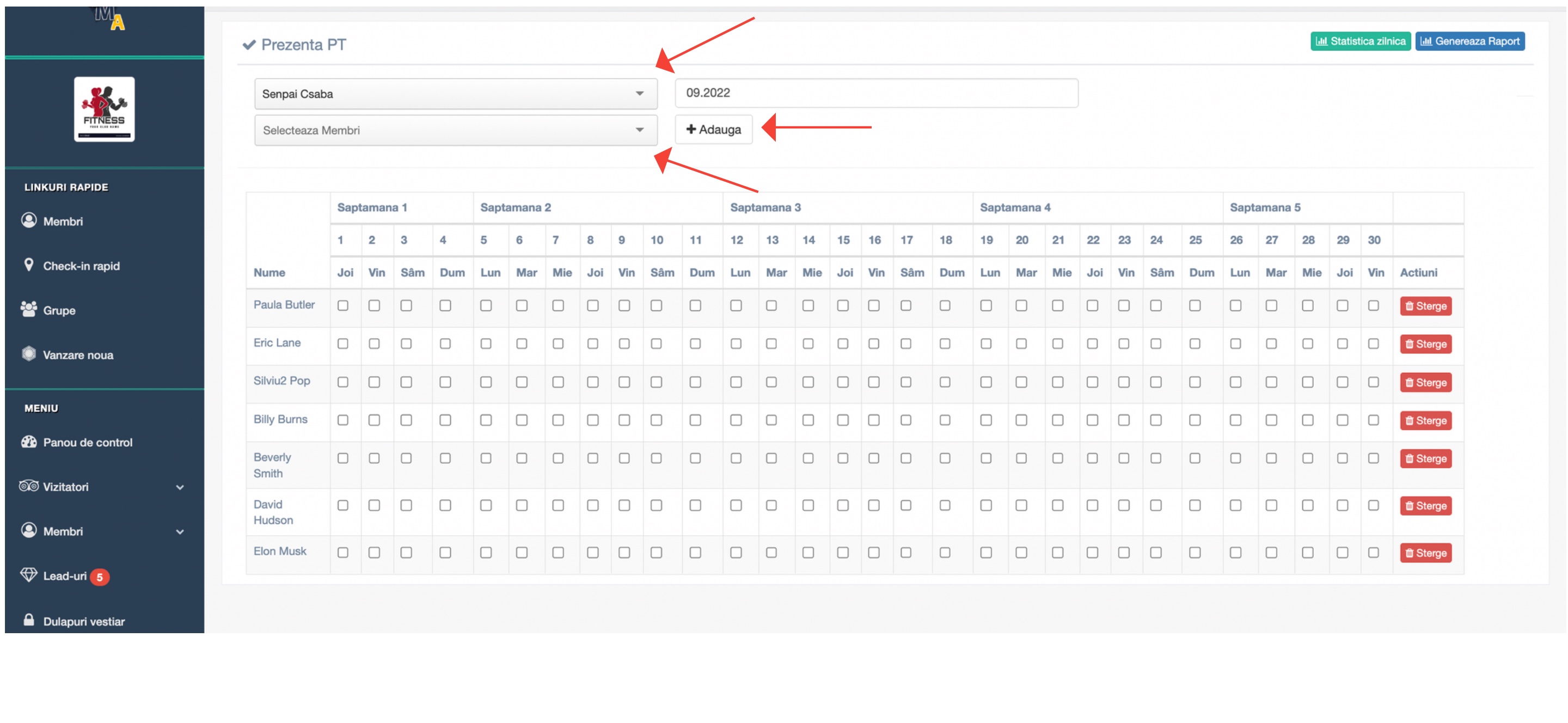 Pentru gestionarea prezenței antrenorilor personali urmați pașii de mai jos:
